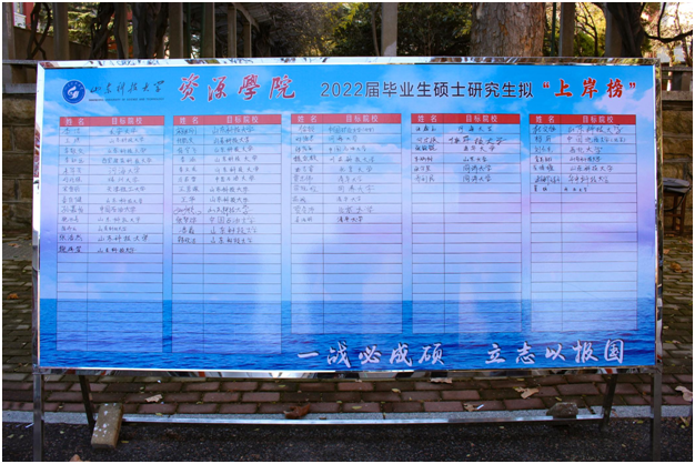 在2022年全国硕士研究生招生考试来临之际,资源学院别出心裁,精心设计“考研助力站”“拟上岸榜”两块展板,为考研学子送上真挚祝福。