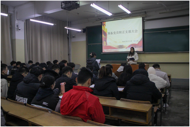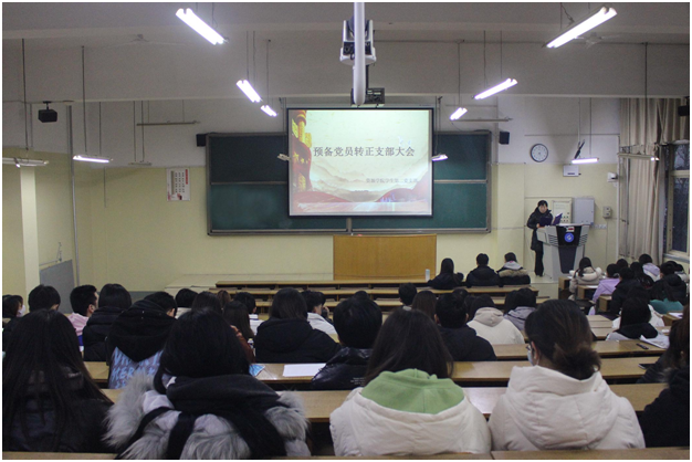 12月29日,资源学院学生党支部在5#303、5#306教室召开预备党员转正大会。大会分别由学生第一、第二党支部书记卢业美、洒艳主持,学院全体学生党员、预备党员参加。