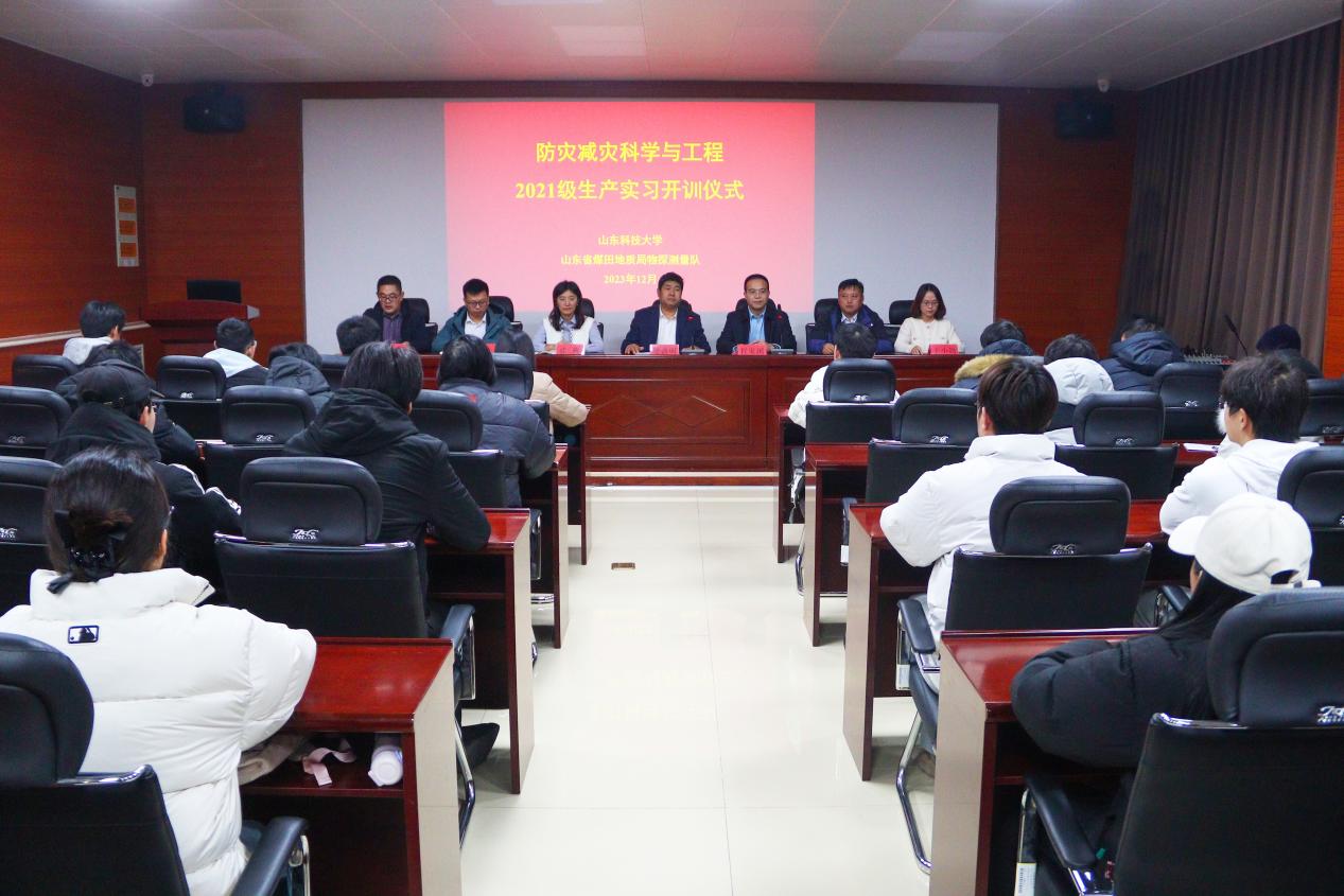 近日,资源学院与山东省煤田地质局物探测量队在东校园2号楼201会议室举行防灾减灾科学与工程专业生产实习开训仪式。山东省煤田地质局物探测量队党委书记、队长樊洪明,总工程师张晖,资源学院党委副书记、副院长程家国,学术副院长于小鸽及部分专业教师代表出席。资源学院副院长秦广鹏主持开训仪式。