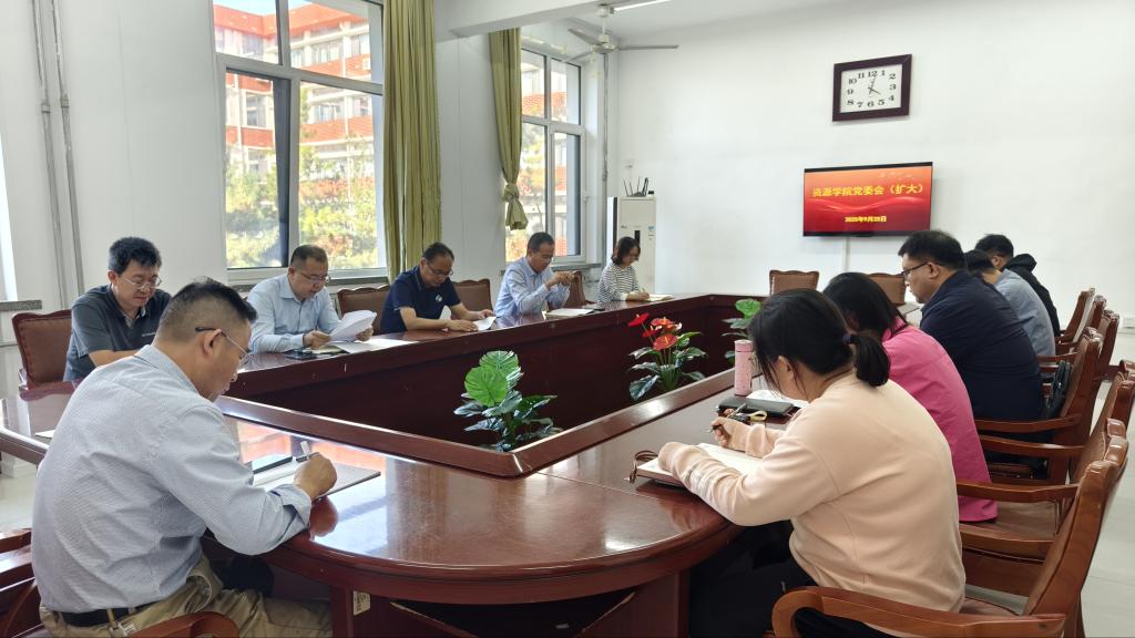 9月25日,资源学院召开党委(扩大)会议,传达学习习近平总书记关于深入贯彻中央八项规定精神学习教育的重要指示和中央、省委、学校党委党的建设工作领导小组会议精神,总结学院深入贯彻中央八项规定精神学习教育开展情况,安排部署下步工作。学院党委书记高尚宇主持会议并讲话,学院党委委员及各党支部书记参加会议。