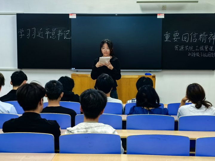 为深入学习领会习近平总书记给谢依特小学戍边支教西部计划志愿者服务队队员的重要回信精神,资源学院工程管理2024级3班团支部在2303教室举办专题团日活动,班级34名同学全员参与。