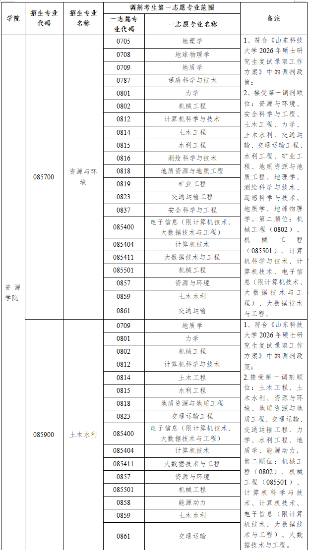 1.符合《山东科技大学2026年硕士研究生复试录取工作方案》中关于研究生调剂的相关政策和调入我院专业的报考条件。