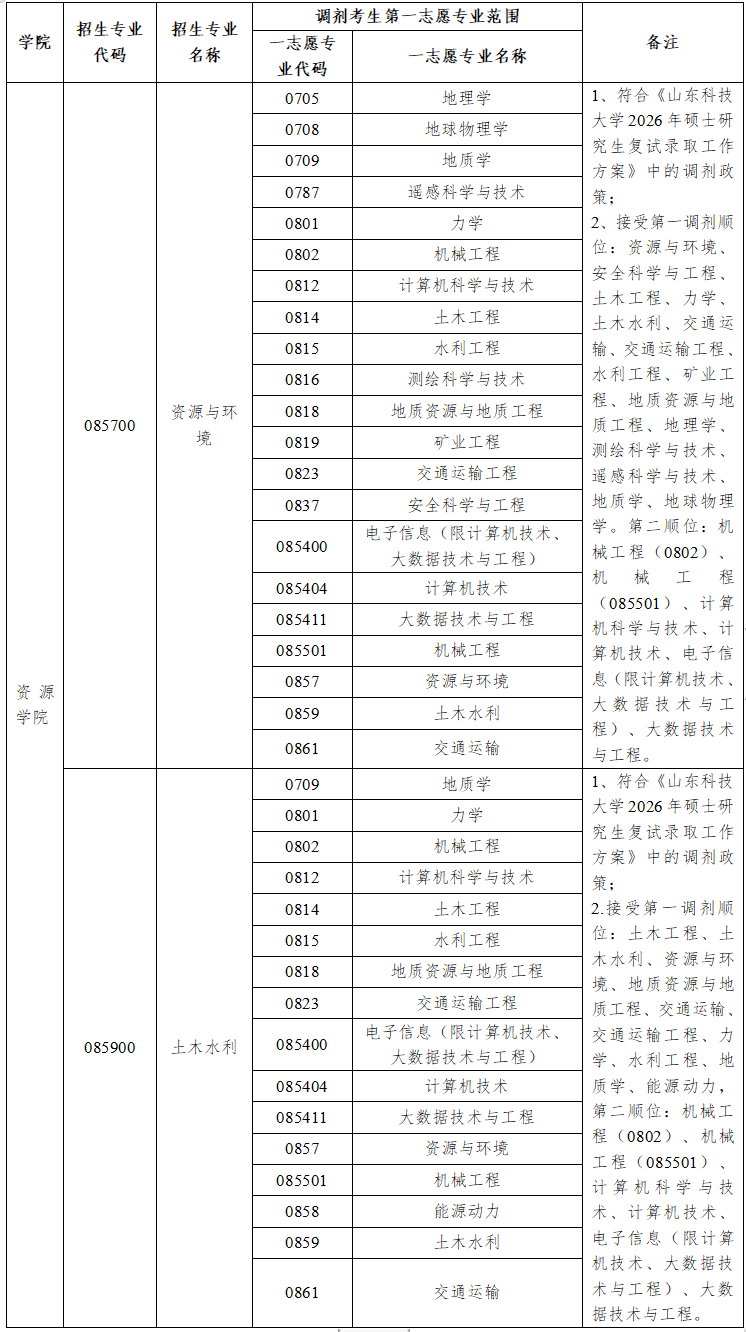 1.符合《山东科技大学2026年硕士研究生复试录取工作方案》中关于研究生调剂的相关政策和调入我院专业的报考条件。
